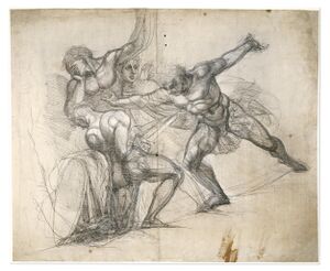 The conspirators attempt to demonstrate that they killed Caesar for the good of Rome, to prevent an autocrat. They prove this by not attempting to flee the scene. Brutus delivers an oration defending his actions, and for the moment, the crowd is on his side. However, Antony makes a subtle and eloquent speech over Caesar's corpse, beginning "Friends, Romans, countrymen, lend me your ears!"[2] He deftly turns public opinion against the assassins by manipulating the emotions of the common people, in contrast to the rational tone of Brutus's speech, yet there is a method in his rhetorical speech and gestures. Antony reminds the crowd of the good Caesar had done for Rome, his sympathy with the poor, and his refusal of the crown at the Lupercal, thus questioning Brutus's claim of Caesar's ambition; he shows Caesar's bloody, lifeless body to the crowd to have them shed tears and gain sympathy for their fallen hero; and he reads Caesar's will, in which every Roman citizen would receive 75 drachmas. Antony, even as he states his intentions against it, rouses the mob to drive the conspirators from Rome. The mob takes Caesar's body to the Forum, lights his funeral pyre, and uses the pyre to light up torches for burning down the homes of the conspirators. Amid the violence, an innocent poet, Cinna, is confused with the conspirator Lucius Cinna and is taken by the mob, which kills him for such "offences" as his bad verses.