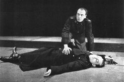 Brutus then attacks Cassius for supposedly soiling the noble act of regicide by having accepted bribes. ("Did not great Julius bleed for justice' sake? / What villain touched his body, that did stab, / And not for justice?"[3]) The two are reconciled, especially after Brutus reveals that his beloved wife committed suicide under the stress of his absence from Rome; they prepare for a civil war against Antony, Caesar's adopted son Octavius, and Lepidus who have formed a triumvirate in Rome. That night, Caesar's ghost appears to Brutus with a warning of defeat. (He informs Brutus, "Thou shalt see me at Philippi."[4])