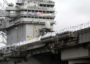 55. ^ "Change in Permanent Duty Station for Carrier Strike Group Nine" (PDF). OPNAV NOTICE 5400 Ser DNS-33/llU228546. Office of the Chief of Naval OperationsU.S. Department of the Navy. 1 أغسطس 2011. Archived from the original (PDF) on 22 مارس 2012. Retrieved 9 سبتمبر 2011.