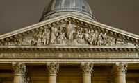 Pediment of the Panthéon with the motto: Aux grands hommes, la patrie reconnaissante ("To the great men, the grateful homeland").