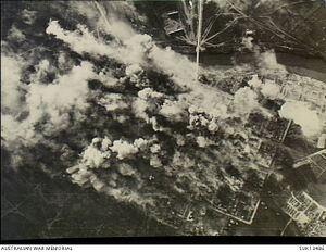 After the Yugoslav coup d'état on 27 March 1941, demonstrations supporting the coup took place in Podgorica.[12] As a result of the coup, Yugoslavia turned against its previous alliance with the Axis powers and was subsequently invaded. Podgorica was bombed over 80 times throughout the course of the war.[13] The city was first bombed by the Luftwaffe on 6 April 1941. On 5 May 1944, Podgorica was bombed by the USAAF in an attack against Axis forces, although the bombardment that day killed approximately 400 civilians.[14] The city was liberated on 19 December 1944. According to the Museum of Genocide Victims, a total of 1,691 people were killed in Podgorica over the course of the war.[15]