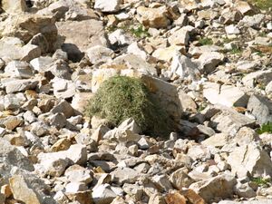 Pikas are active during daylight (diurnal) or twilight hours (crepuscular), with higher-elevation species generally being more active during the daytime. They show their peak activity just before the winter season. Pikas do not hibernate and remain active throughout the winter by traveling in tunnels under rocks and snow and eating dried plants that they have stored.[14] Rock-dwelling pikas exhibit two methods of foraging: the first involves direct consumption of food, and the second is characterized by the gathering of plants to store in a "haypile" of cached plants.[15]
