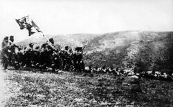 In the First Balkan War the Bulgarian army had driven the Turkish forces back from the border, but the Turkish forces retreated to the prepared positions at Çatalca where on 16–17 November 1912 they defeated the Bulgarians at the "First Battle of Çatalca".[6][7] The Çatalca fortifications formed a line across the peninsula, the "Chataldja line", which became the armistice line of 3 December 1912,[6] after Bulgaria decided not to attack Adrianople at that time.[6][7] Upon expiration of the armistice, on 3 February [O.S. 21 January] 1913, hostilities recommenced and the Second Battle of Çatalca began. It was a series of thrusts and counter-thrusts by both the Ottomans and the Bulgarians and lasted until 3 April 1913.[8] There were a large number of journalists who reported on the military actions at Çatalca, whose accounts provide rich details about this event.