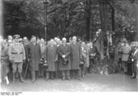 كشف الستار عن أول لوح تذكاري في مسرح الجريمة في يونيو 1929. المستشار السابق يوزف ڤيرت ووزير الدفاع ڤيلهلم گرونر في الصف الأول |