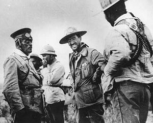To secure volunteers, Huerta attempted to use Mexican nationalism and anti-Americanism. In the fall of 1913, running spurious stories in the press warning of an imminent U.S. invasion and asking for patriotic men to step up to defend Mexico.[57] The campaign attracted some volunteers from the lower middle class, through they were usually disillusioned when they learned that they were going to fight other Mexicans, not the Americans.[58] In rural Mexico a sense of Mexican nationalism barely existed at this time among the campesinos. Mexico was an abstract entity that meant nothing, and most peasants were primarily loyal to their own villages, the patria chicas.[59] Huerta's patriotic campaign was a complete failure in the countryside.[58] The other source of volunteers was provided by allowing wealthy landlords to raise private armies under the guise of the state militias, but few peons wanted to fight, let alone die, for Gen. Huerta, since some Constitutionalists were promising land reform, although not First Chief Venustiano Carranza.[60]