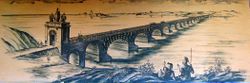The Trajan's Bridge across the lower Danube، as seen from Drobeta. Reconstruction by the engineer E. Duperrex in 1907