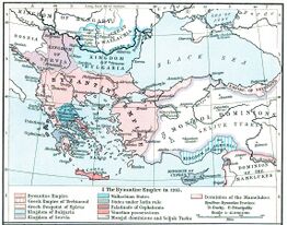 الإمبراطورية البيزنطية المستعادة والأراضي المحيطة بها في 1265.
