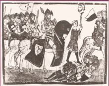 Florentine Guelphs carry the head of the Sienese general Provenzano Salvani at their peak بعد معركة كولى دي ڤال ديلسا. |