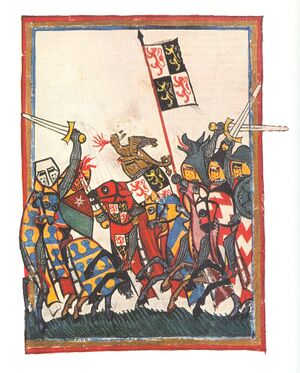- الدويلات الصليبية: Lucia , sister and heiress of the deceased in the previous year Bohemund IV. , Comes after Tripoli to the government in the County of Tripoli to take over. She is rejected by the local commune because she is married to Narjot de Toucy, a former admiral of Charles of Anjou . The Tripoli Commune is seeking help from the Republic of Genoa . When they tried to turn Tripoli into a Genoese colony, the commune finally recognized Lucia. However, after an alliance with Genoa, the latter also awards privileges to Genoese, which provokes the displeasure of competitors Venice and Pisa .