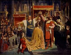 June 29: Albert II is crowned King of Bohemia in Prague (painting by Karel Svoboda).