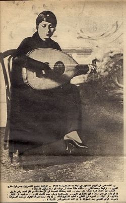 أم كلثوم تعزف العود وتغني في "كلوب البسفور" في القاهرة، أغسطس 1927.