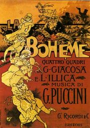 - 1896 - The opera La Bohème by Giacomo Puccini with the libretto by Luigi Illica and Giuseppe Giacosa after the novel Les scènes de la vie de bohème by Henri Murger has its premiere at the Teatro Regio in Turin under the direction of أرتورو توسكانيني. The audience reacted cautiously, and the critics were mostly negative.