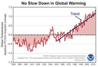 - A new study examining the role of oceanic cycles in heat transfer concludes that the global warming "pause" is only temporary and that temperatures will accelerate in the near future.[89][90][91]