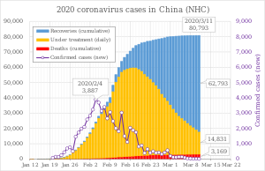 23. ^ "疫情通报(列表)" [current information about the 2020 coronavirus outbreak in Mainland China, Hong Kong, Macau and Taiwan]. nhc.gov.cn (in Chinese). Retrieved 2 March 2020.{{cite web}}: CS1 maint: unrecognized language (link); current information about the 2020 coronavirus outbreak in Chinese provinces, other countries in the globe, see "疫情实时大数据报告" [current information about the 2020 coronavirus outbreak in Chinese provinces, other countries in the globe]. baidu.com (in Chinese). Retrieved 2 March 2020.{{cite web}}: CS1 maint: unrecognized language (link)