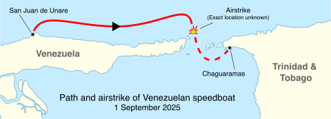 [... 11 men died when a speedboat was destroyed by the U.S. Navy in the Caribbean on Monday, 1 September. The vessel departed on Sunday night, 31 August, bound for Trinidad and Tobago.] - ^ Delgado, Antonio Maria (2 September 2025). "Trump says U.S. destroyed drug boat from Venezuela: 'A lot of drugs on that boat'". Miami Herald. Archived from the original on 2 September 2025.