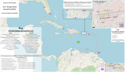 في سبتمبر 2025 بدأ الجيش الأمريكي شن غارات جوية على سفن في [[البحر الكاريبي]، مُعلناً ذلك من قِبل إدارة دونالد ترمپ، وذلك لمكافحة تجارة المخدرات في الولايات المتحدة. وفي أكتوبر، توسع نطاق الغارات ليشمل شرق المحيط الهادي. زعمت الولايات المتحدة أن السفن تُدار من قِبل جماعات صنفتها كإرهابية مرتبطة بالمخدرات، بما في ذلك عصابة قطار أراگوا الڤنزويلية وجيش التحرير الوطني، لكنها لم تنشر أي دليل على هذه المزاعم.