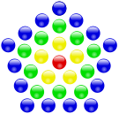 Icosahedral symmetry contains a total of thirty-one axes of symmetry; six five-fold, ten three-fold, and fifteen two-fold.[27]