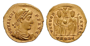 Year 376 (CCCLXXVI) was a leap year starting on Friday (link will display the full calendar) of the Julian calendar. At the time, it was known as the Year of the Consulship of Valens and Augustus (or, less frequently, year 1129 Ab urbe condita). The denomination 376 for this year has been used since the early medieval period, when the Anno Domini calendar era became the prevalent method in Europe for naming years.