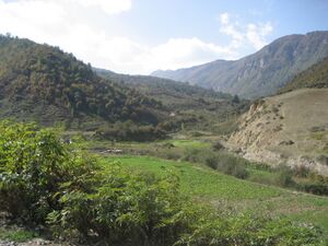 In August 1795, Agha Mohammad Khan crossed the Aras river with a 70,000-strong army.[33] This force was divided in three: the left wing was sent in the direction of Erivan, the right one parallel to the Caspian Sea into the Mughan across the lower Aras towards Dagestan and Shirvan, while the Shah headed the centre force himself, advancing towards the fortress of Shusha in the Karabakh Khanate, which he besieged between 8 July and 9 August 1795.[36] His right and left wing forced the Khans of Ganja and Erivan into an alliance.[37] Having abandoned the siege of Shusha due to stiff resistance,[38] which was further aided by Georgian crown prince Aleksandre,[33] the Khan of Karabakh, Ibrahim Khan, eventually surrendered to Agha Mohammad Khan after discussions. He paid a regular tribute and surrendered hostages, though the Qajar forces were still denied entrance to Shusha.[38] Since the main objective was Georgia, Agha Mohammad Khan was willing to have Karabakh secured by this agreement for now, for he and his army subsequently moved further.[39] While at Ganja, having secured Shirvan, he was joined by Javad Khan Qajar and the rest of his right wing contingent.[37] At Ganja, Mohammad Khan sent Heraclius II his last ultimatum, which he received in September 1795: