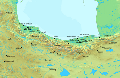 Agha Mohammad Khan took with him a group of loyal followers and left for Tehran. Meanwhile, in Shiraz, people were fighting among themselves. In Tehran, Agha Mohammad Khan met the main chieftains of the Develu clan, with whom he made peace. He visited the shrine of Shah Abd al-Azim, where his father's skull was kept. He then travelled to the Mazandaran Province, where his first task was to set up his suzerainty among his Quwanlu brothers. This resulted in a clash with his brothers Reza Qoli and Morteza Qoli, whom he defeated on 2 April, conquering Mazandaran.[9] Meanwhile, Morteza Qoli fled to Astarabad, where he fortified himself. Agha Mohammad Khan could not simply storm the city, since starting a war with Morteza Qoli would mean that his frail alliance with the Develu could fall apart—Morteza Qoli's mother was a Develu.[9] At the same time, the Zand prince Ali-Morad Khan Zand sent an army of Zand and Afghan troops under Azad Khan Afghan's son Mahmud Khan to Mazandaran, which Agha Mohammad Khan's brother Jafar Qoli Khan managed to repel. Agha Mohammad Khan, together with Hossein Qoli Khan's sons Fath-Ali Qoli and Hosayn Qoli, was now in a firm position in Babol, the capital of Mazandaran.[9]