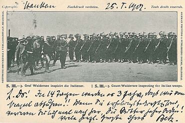 Born into a military family, von Waldersee saw decorated service as an artillery officer, and became Prussian military attaché at the Paris embassy in 1870. This gave him insight into the French defences that would prove crucial in the upcoming Franco-Prussian War, in which he played a significant role. Later, as principal assistant to Field-Marshal Helmuth von Moltke the Elder, Chief of the Imperial General Staff, von Waldersee gained influence with the future Kaiser Wilhelm II, who promoted him Chief of Staff on his accession.