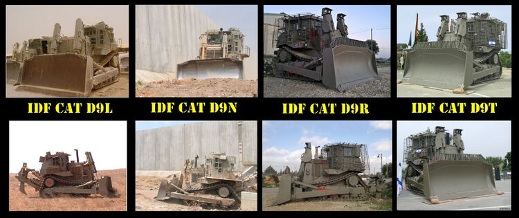 The D9R, the latest generation of D9 bulldozers in IDF service, has a power of 405 إلى 410 حصان (302 إلى 306 kW) and drawbar pull of 71.6 قوة أطنان مترية (702 kN). It has a crew of two, an operator and a commander. It is operated by the TZAMA (צמ"ה = ציוד מכני הנדסי, Mechanical Engineering Equipment) units of the Israeli Engineering Corps.[بحاجة لمصدر]