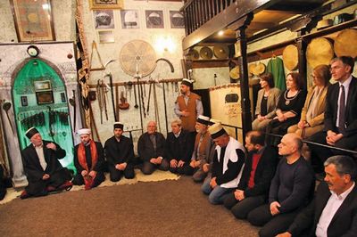 رئيسة كوسوڤو، عاطفة يحيى أغا، بمناسبة عيد السلطان نوروز، تزور تكية الطريقة الرفاعية في پريزرن، حيث استقبله الشيخ أدريحسين شيخو Adrihysein Shehu في 21 مارس 2015.