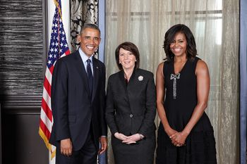 | عاطفة يحيى أغا في مبادرة كلنتون العالمية 2014. | |