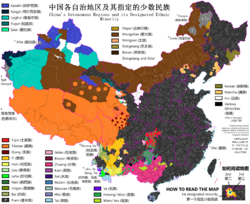 | Qiandongnan Prefecture | 1956 | Guizhou | Miao | 41.48 | 41.57 | Dong* | 31.40 | 29.02 | 19.3 | 21.73 | 4٬535٬015 |