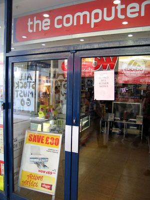 لاحظ الملصق على باب متجر لبيع الحاسوب بعد يوم من إعلان "إفلاس" الشركة الأم، المملكة المتحدة.