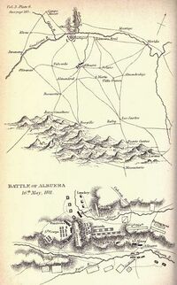 The Battle of Albuera (16 May 1811) was a battle during the Peninsular War. A mixed British, Spanish and Portuguese corps engaged elements of the French armée du Midi (Army of the South) at the small Spanish village of Albuera, about 20 كيلومتر (12 mi) south of the frontier fortress-town of Badajoz, Spain.