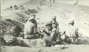 Shortly before the Ottoman attack: Russian and Armenian soldiers near the front line.