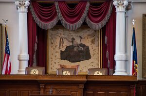 General Antonio López de Santa Anna was a proponent of governmental federalism when he helped oust Mexican President Anastasio Bustamante in December 1832. Upon his election as president in April 1833,[2] Santa Anna switched his political ideology and began implementing centralist policies that increased the authoritarian powers of his office.[3] His abrogation of the Constitution of 1824, correlating with his abolishing local-level authority over Mexico's state of Coahuila y Tejas (Coahuila and Texas), became a flashpoint in the growing tensions between the central government and its Tejano and Anglo citizens in Texas. While in Mexico City awaiting a meeting with Santa Anna, Texian empresario Stephen F. Austin wrote to the ayuntamiento (city council) of Béxar (now San Antonio) urging a break-away state. In response, the Mexican government kept him imprisoned for most of 1834.[4][5]