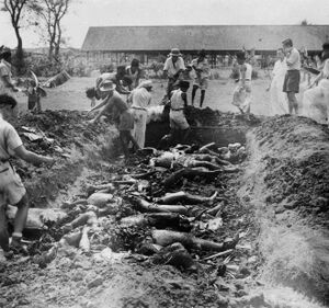 The fourth phase (December 1945 to December 1946) is considered the aftermath of the heaviest Bersiap fighting. In Jakarta, where hundreds of autonomous Pemuda groups existed, the last months of 1945 were, according to Cribb, a "terrifying time of regular looting, robbery, kidnapping and random murders were Europeans and Indo-Europeans disappeared even from the heart of the city, to be found floating in the kali (canals) days later".[53] In Bandung, Republican attacks against alleged pro-Dutch civilians reached a peak in November and December, with 1,200 killed there.[54] The alleged pro-Dutch civilians mostly included native-born Indo-European, Indo-Chinese, Christian indigenous people (e.g. Menadonese and Ambonese) and indigenous aristocracy, which made the Bersiap period a chaotic mix of civil war, religious conflict and social revolution. Other killings among supposed revolutionary groups also happened, with prominent Indonesian nationalist and minister, Oto Iskandar di Nata kidnapped and killed on 19–20 December 1945 by Laskar Hitam.[55] Meanwhile, in Aceh, between December 1945 to March 1946, the leading uleëbalang of Aceh and their families would be imprisoned or killed, leading to dominance of pro-Republican ulama displacing the uleëbalang elites and the single coherent ideology of 'Islam' in Aceh society.[26]