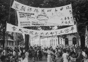 By September 1945, many of the self-proclaimed pemuda, who were ready to die for '100% freedom', were becoming impatient.[21] It was common for ethnic 'out-groups' — Dutch internees, Eurasians, Ambonese and Chinese — and anyone considered to be a spy, to be subjected to intimidation, kidnap, robbery, and sometimes murder, even organised massacres. Such attacks would continue to some extent for the course of the revolution.[21][22] As the level of violence increased across the country, the Sukarno- and Hatta-led Republican government in Jakarta urged calm. However, pemuda, in favour of armed struggle, saw the older leadership as dithering and betraying the revolution, which often led to conflict amongst Indonesians.
