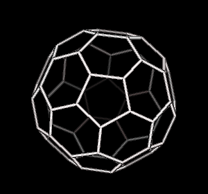 أما طبقة الأشكال السداسية- في شظايا الجرافيت - فتميل لجعل السطح مسطحا، وعندما تختلط الخماسيات والسداسيات، فإن الخماسيات تبتعد عن بعضها البعض لأن وجودها متجاورة يجعلها غير مستقرة، ومن ثم يلتف السطح إلى أعلى حتى ينغلق تماما، حيث تفصل السداسيات بين الخماسيات وكذلك بين بعضها البعض. وهكذا يبدو جزيء ك- 60 مثل كرة القدم المجوفة، وهو الجزيء الوحيد لأي عنصر منفرد يتخذ شكلا كرويا.