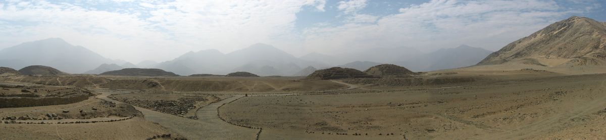 The Peruvian littoral appears an "improbable, even aberrant" candidate for the "pristine" development of civilization, compared to other world centers.[13] It is extremely arid, bounded by two rain shadows (caused by the Andes to the east, and the Pacific trade winds to the west). The region is punctuated by more than 50 rivers that carry Andean snowmelt. The development of widespread irrigation from these water sources is seen as decisive in the emergence of Caral–Supe;[14][15] since all of the monumental architecture at various sites has been found close to irrigation channels.[بحاجة لمصدر]