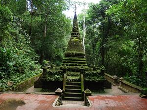 The Cardamom Mountains holds many historic sites and relics from the 15th- to 17th-century specifically. This includes a number of exposed burial sites of a type known as jar burials. The burials are scattered around the mountains, set out on remote, natural rock ledges, and contains 60 cm exotic ceramic jars and rough-hewn log coffins.[4][5][6]