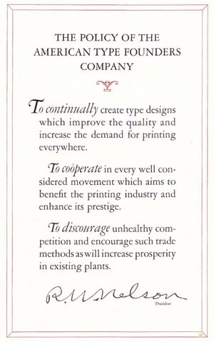 The printing equipment company ATF explicitly states in its 1923 manual that its goal is to 'discourage unhealthy competition' in the printing industry. Its power collapsed considerably just six years later in the Great Depression and it temporarily entered administration in 1933.