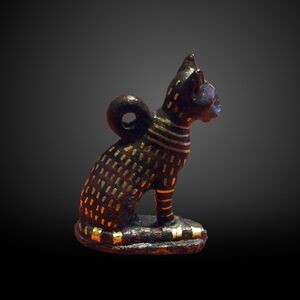 Amulets with cat heads came into fashion in the 21st century BC during the 11th Dynasty.[5] A mural from this period in the tomb of Baqet III depicts a cat in a hunting scene confronting a rat-like rodent.[14]