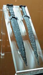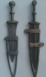 Metalwork stands out in Celtiberian archaeological finds, partly from its indestructible nature, emphasizing Celtiberian articles of warlike uses, horse trappings and prestige weapons. The two-edged sword adopted by the Romans was previously in use among the Celtiberians, and Latin lancea, a thrown spear, was a Hispanic word, according to Varro. Celtiberian culture was increasingly influenced by Rome in the two final centuries BC.