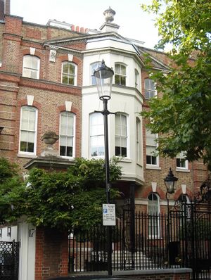 After the death of his wife, Rossetti leased a Tudor House at 16, Cheyne Walk, in Chelsea,[42] where he lived for 20 years surrounded by extravagant furnishings and a parade of exotic birds and animals.[43] Rossetti was fascinated with wombats, asking friends to meet him at the "Wombat's Lair" at the London Zoo in Regent's Park, and spending hours there. In September 1869, he acquired the first of two pet wombats, which he named "Top". It was brought to the dinner table and allowed to sleep in the large centrepiece during meals. Rossetti's fascination with exotic animals continued throughout his life, culminating in the purchase of a llama and a toucan, which he dressed in a cowboy hat and trained to ride the llama round the dining-table for his amusement.[44]