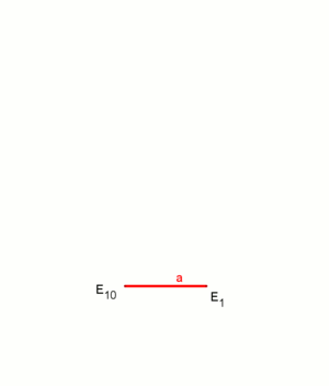 - In the construction with given side length[6] the circular arc around D with radius DA produces the segment E10F, whose division corresponds to the golden ratio.