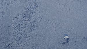 مضيق الدنمارك يفصل آيسلندا عن گرين‌لاند في أعلى اليسار.