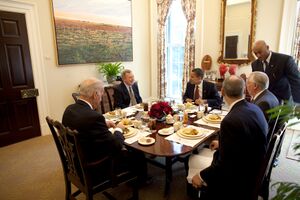 Durbin eating lunch with President Barack Obama, Vice President Joe Biden, and House Majority Leader Steny Hoyer.