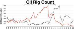 Oil and natural gas drilling rigs are used not only to identify geologic reservoirs, but also used to create holes that allow the extraction of oil or natural gas from those reservoirs. Primarily in onshore oil and gas fields once a well has been drilled, the drilling rig will be moved off of the well and a service rig (a smaller rig) that is purpose-built for completions will be moved on to the well to get the well on line.[7] This frees up the drilling rig to drill another hole and streamlines the operation as well as allowing for specialization of certain services, i.e. completions vs. drilling.