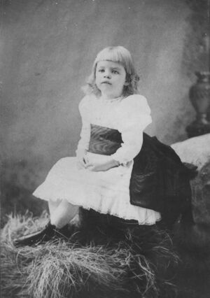 After the deaths of her parents, Roosevelt was raised in the household of her maternal grandmother, Mary Livingston Ludlow Hall of the Livingston family in Tivoli, New York.[22] As a child, she was insecure and starved for affection, and considered herself the "ugly duckling".[19] However, Roosevelt wrote at 14 that one's prospects in life were not totally dependent on physical beauty: "no matter how plain a woman may be if truth and loyalty are stamped upon her face all will be attracted to her."[25]