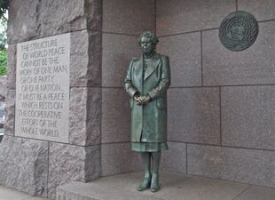Anna Eleanor Roosevelt (/ˈɛlɪnɔːr ˈroʊzəvɛlt/ EL-in-or ROH-zə-velt; October 11, 1884 – November 7, 1962) was an American political figure, diplomat, and activist.[5][6] She was the first lady of the United States from 1933 to 1945, during her husband President Franklin D. Roosevelt's four terms in office, making her the longest-serving first lady of the United States.[5] Through her travels, public engagement, and advocacy, she largely redefined the role of First Lady. Roosevelt then served as a United States Delegate to the United Nations General Assembly from 1945 to 1952, and took a leading role in designing the text and gaining international support for the Universal Declaration of Human Rights. In 1948 she was given a standing ovation by the assembly upon their adoption of the Declaration.[7][8] President Harry S. Truman later called her the "First Lady of the World" in tribute to her human rights achievements.[9]