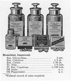 An assortment of Lilly's throat lozenges from a 1906 sales book.