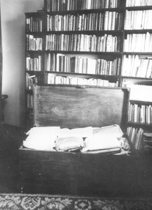 In his lifetime, he published four books in English and one alone in Portuguese: Mensagem (Message). However, he left a lifetime of unpublished, unfinished or just sketchy work in a domed, wooden trunk (25,574[66] manuscript and typed pages which have been housed in the Portuguese National Library since 1988). The heavy burden of editing this huge work is still in progress. In 1985 (fifty years after his death), Pessoa's remains were moved to the Hieronymites Monastery, in Lisbon, where Vasco da Gama, Luís de Camões, and Alexandre Herculano are also buried.[67] Pessoa's portrait was on the 100-escudo banknote.